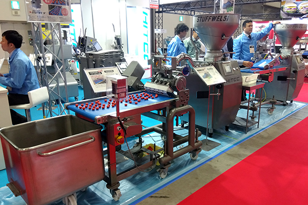 At our booth, we exhibited and demonstrated the sausage vacuum high speed stuffing, linking and hanging system “VACUUM LINKWEL MK-II“, “HAMBURG FORMER” and “FLOW DIVIDER + BALL FORMING CUTTER”.
